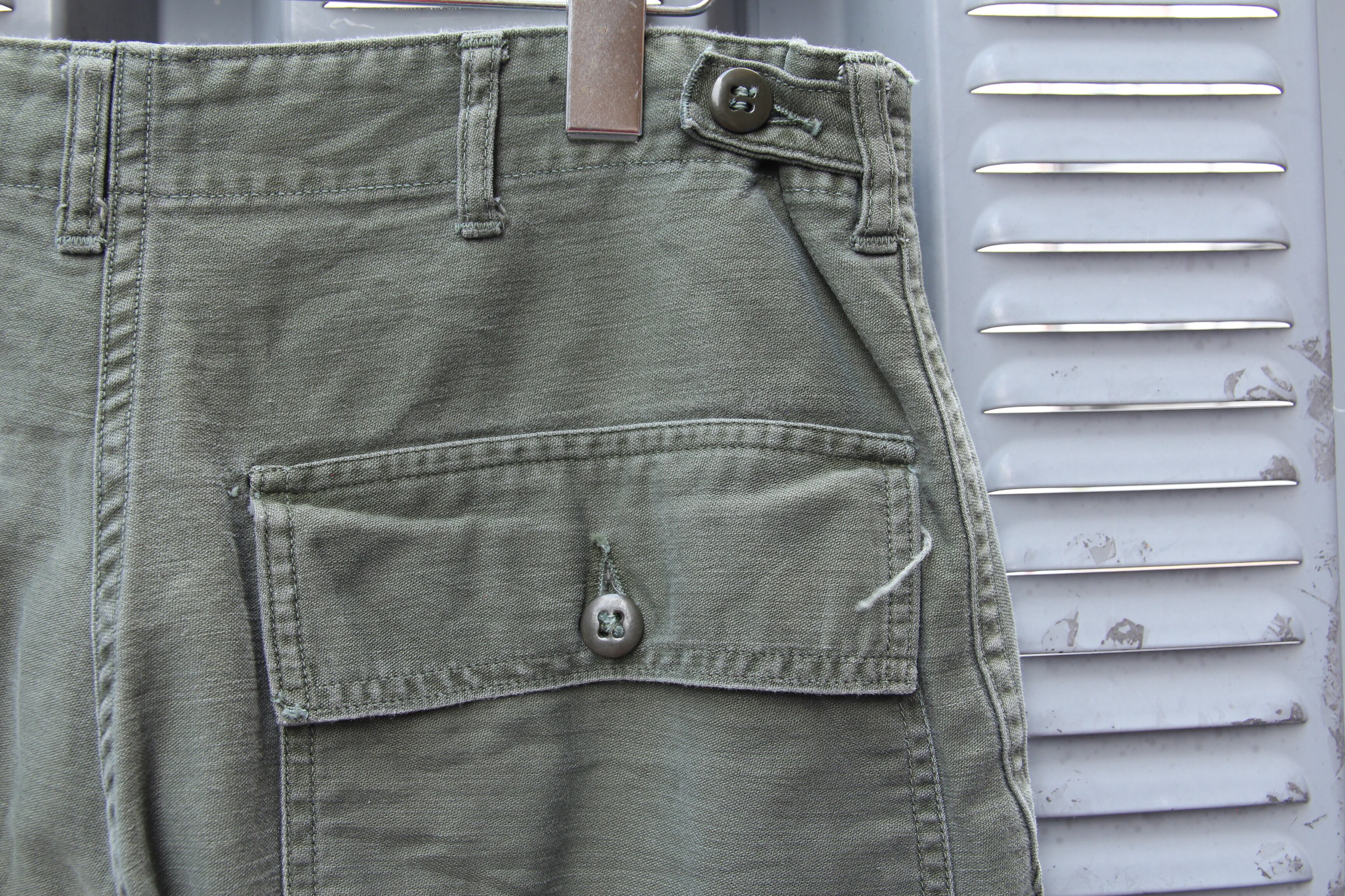 1960年代のUS,Army製のベイカーショートパンツです。タグが薄れてしまい製造年は特定できませんが、ボタンフライや内側に付く白タグから60年代前期のアイテムだと思われます。60年代のアイテムというだけで魅力的です。フルレングスの物も良いですが夏はショートパンツも最高だと思います。元々フルレングスの物をショートパンツにしたアイテムです。この手のアイテムがお好きな方、気になる方は是非この機会にご検討の程宜しくお願い致します。