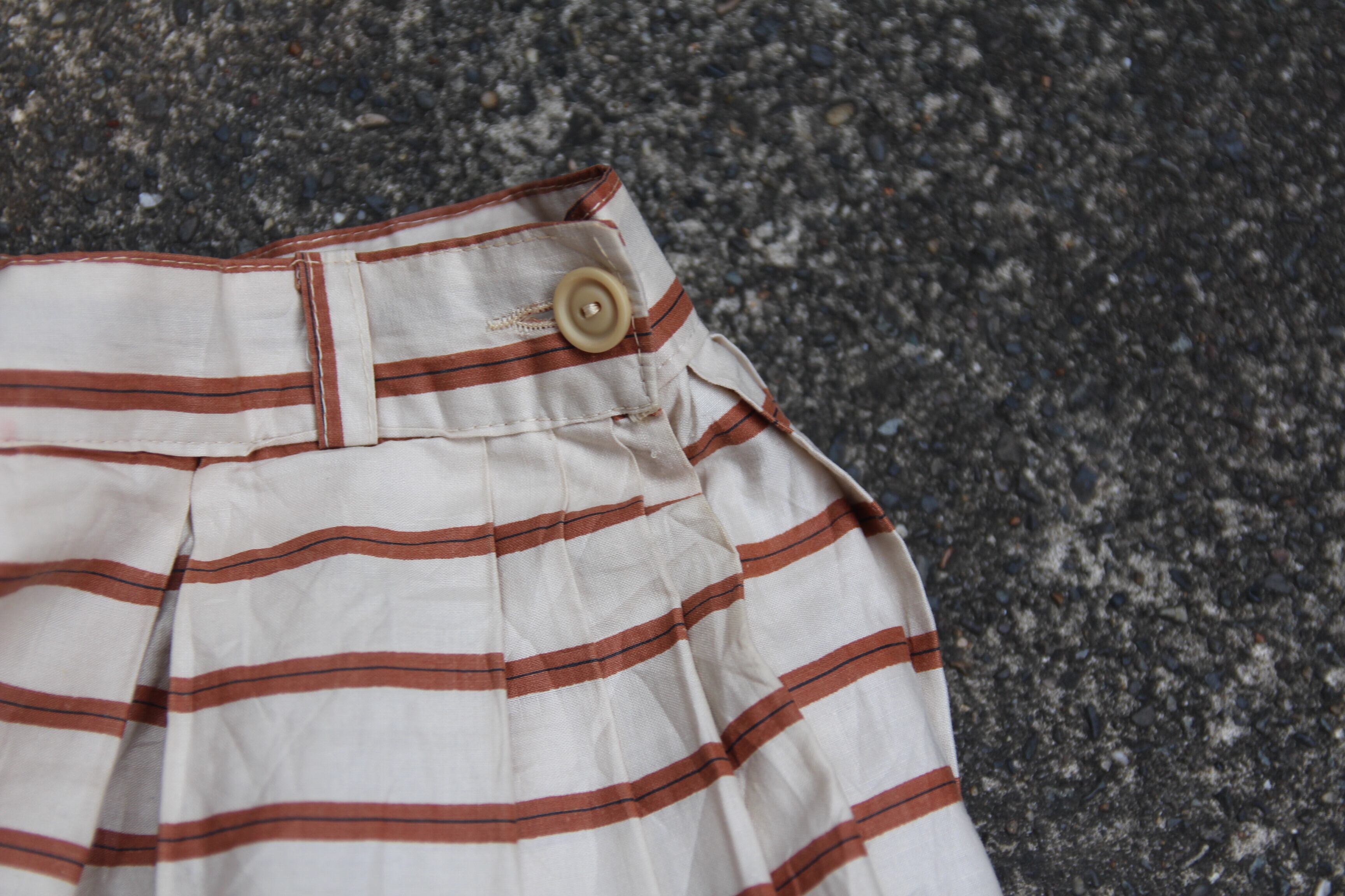 1970年代に作られたクリーム色にブラウンを基調をした夏におすすめのスカートが入荷致しました。プリーツ加工が施されている上に、コンパスがデザインされているという珍しいデザインになっております。素材がコットンですので肌触りも柔らかく、これからの季節にぴったりのアイテムですので気になる方は是非!