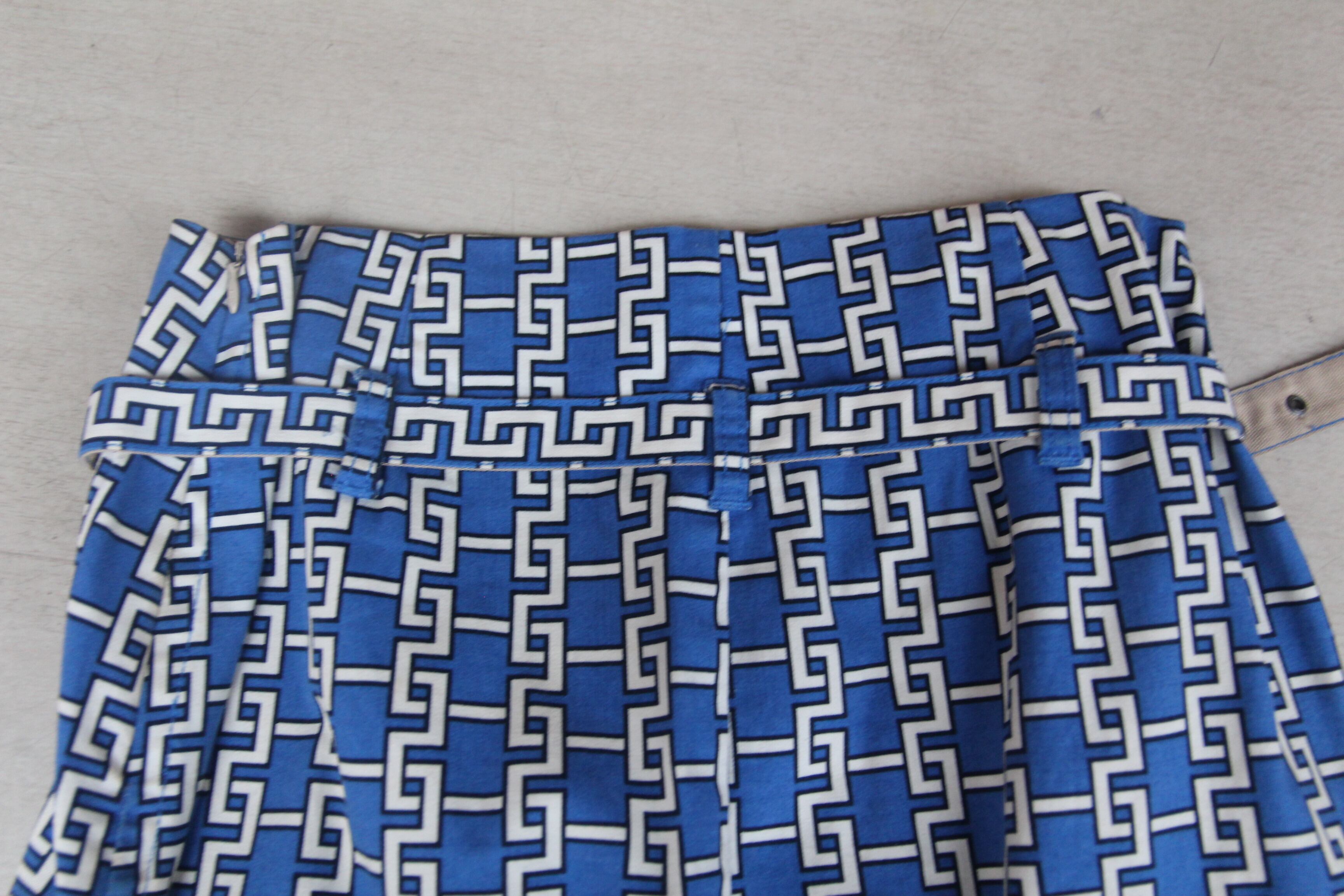 TOMMY HILFIGER製のセミタイトスカートです。鮮やかな青に白という夏らしい色合いになっており、デザインも幾何学柄ですのでシンプルなTシャツに合わせるだけで普段と一味違うコーディネートが可能です。ウエストには付属のベルトがついており、その日のスタイルに合わせてハイウエストでもローウエストでもお楽しみいただけます。素材はコットンですので肌触りが優しくサラッと履いて頂けます。お好きな方は是非この機会にご検討下さい。