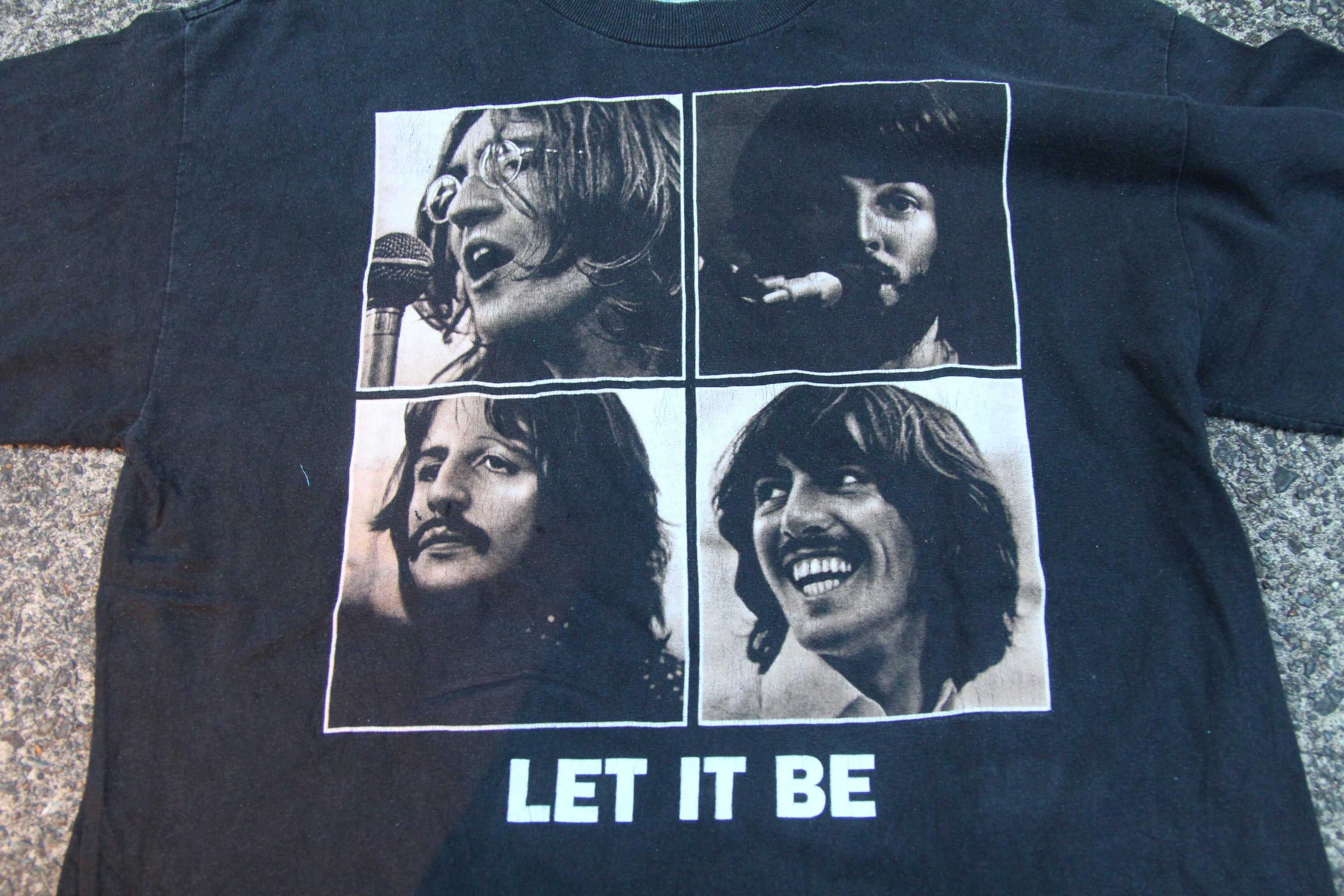 イギリス発の世界的有名なバンドThe BeatlesのプリントTシャツとなります。プリントは1970年に発売された13枚目のアルバムLet it beのアルバムジャケットがプリントされております。