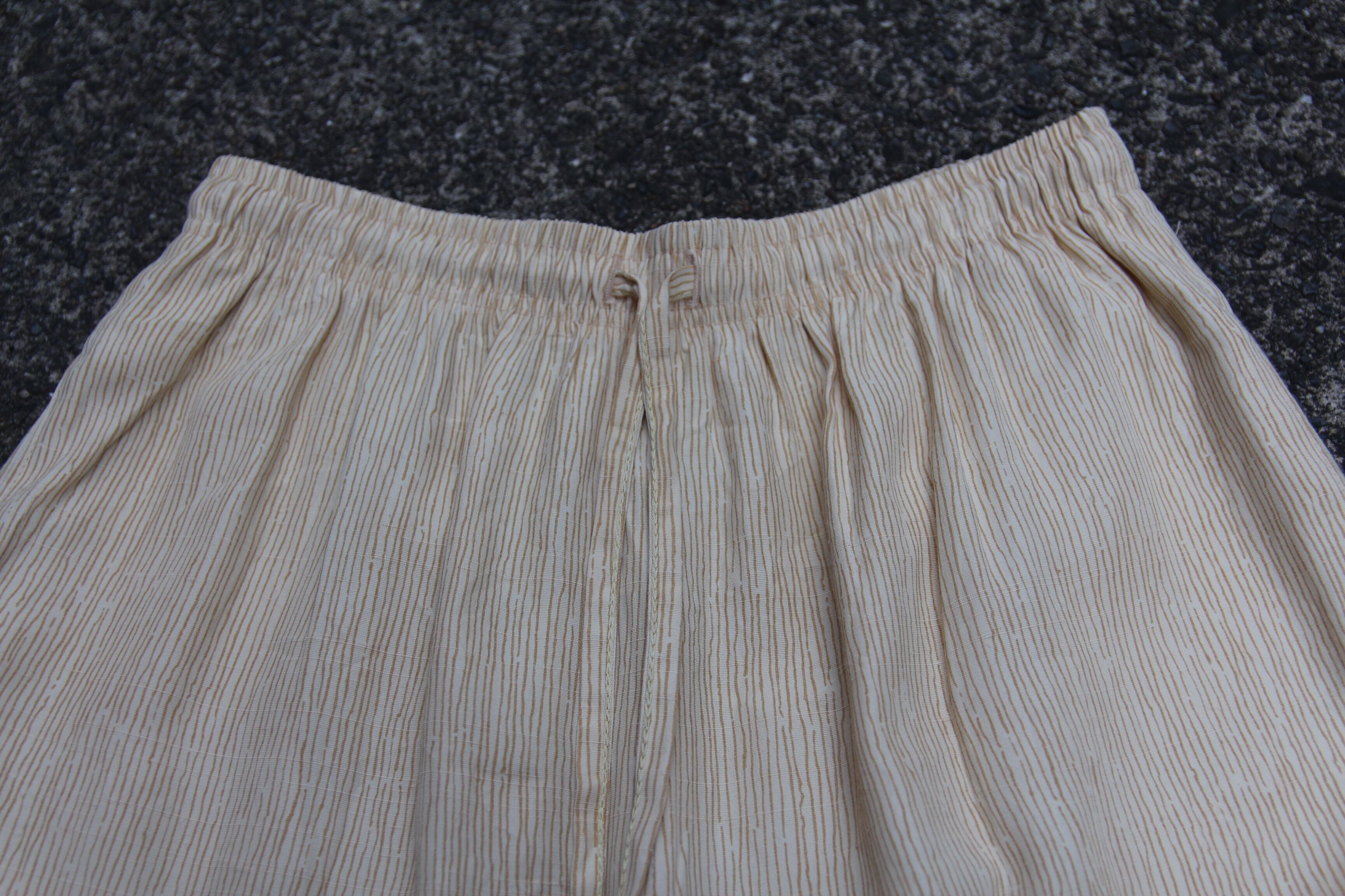 1990年代頃のWorthington製イージーパンツとなります。淡いベージュとイエローのカラーリングに波打ったストライプ柄が大変お洒落なデザインとなっており、シルエットも太めですので男性らしいダボっとしたスタイリングでも着用頂けるかと思います。適度な厚みのレーヨン素材ですので幅広い季節に対応しております。この手のアイテムがお好きな方、気になる方は是非この機会にご検討の程宜しくお願い致します。