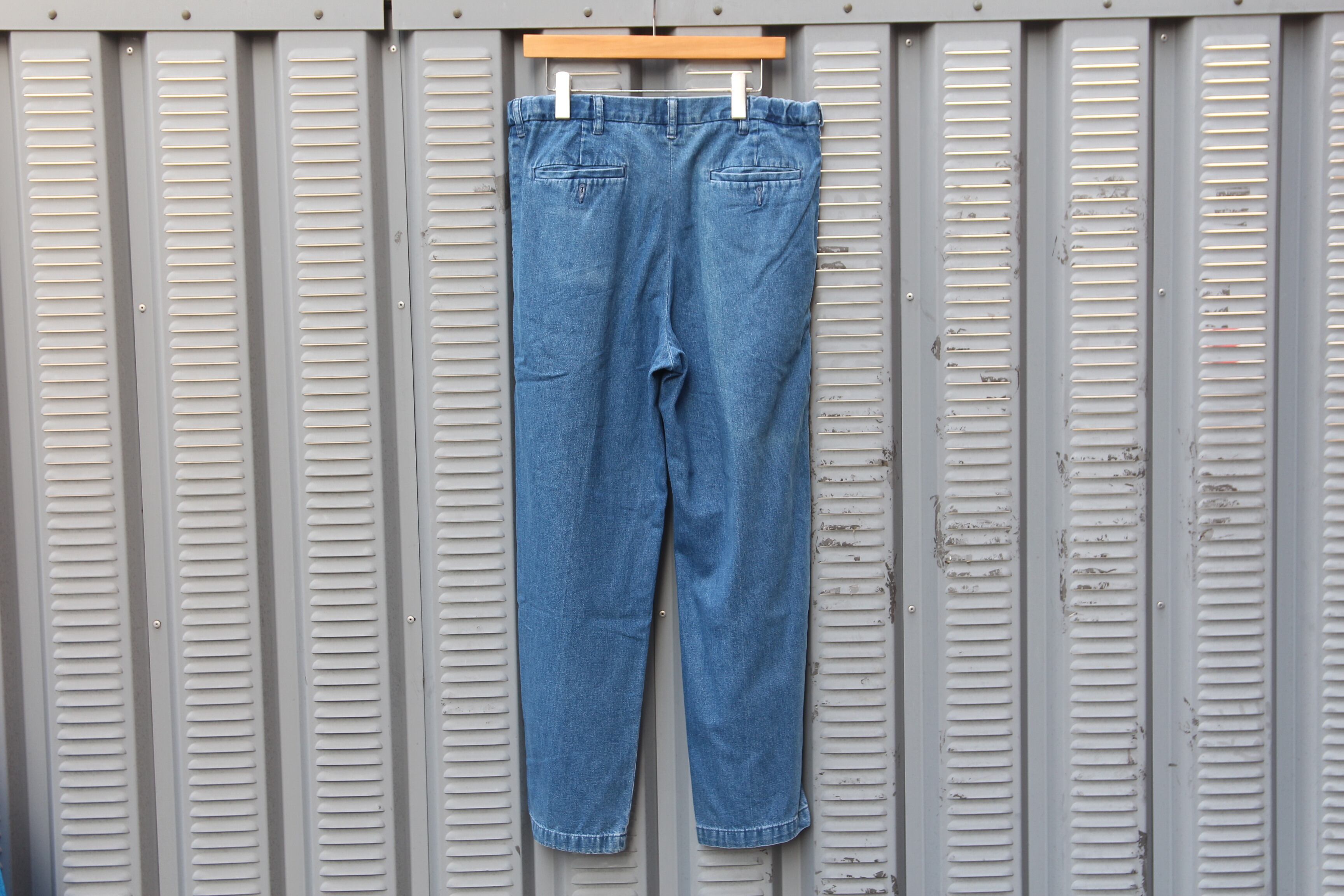 1990年代頃のHaggar製タック入りデニムパンツが入荷致しました。タックパンツ特有のお尻、腰、腿周り部分のワイドなシルエットがお色味もシーンを選ばずにお使い頂けるライトデニムカラーとなっております。ウエスト裏部分にアジャストゴムが付いており、穿いた時に腰をフィットしてくれる所も穿き心地を非常に高めてくれる点も大変優秀ですね。この手のパンツをまだお持ちで無い方、挑戦してみたい方にはお勧めの1着となっておりますので、是非この機会にご検討の程宜しくお願いします。