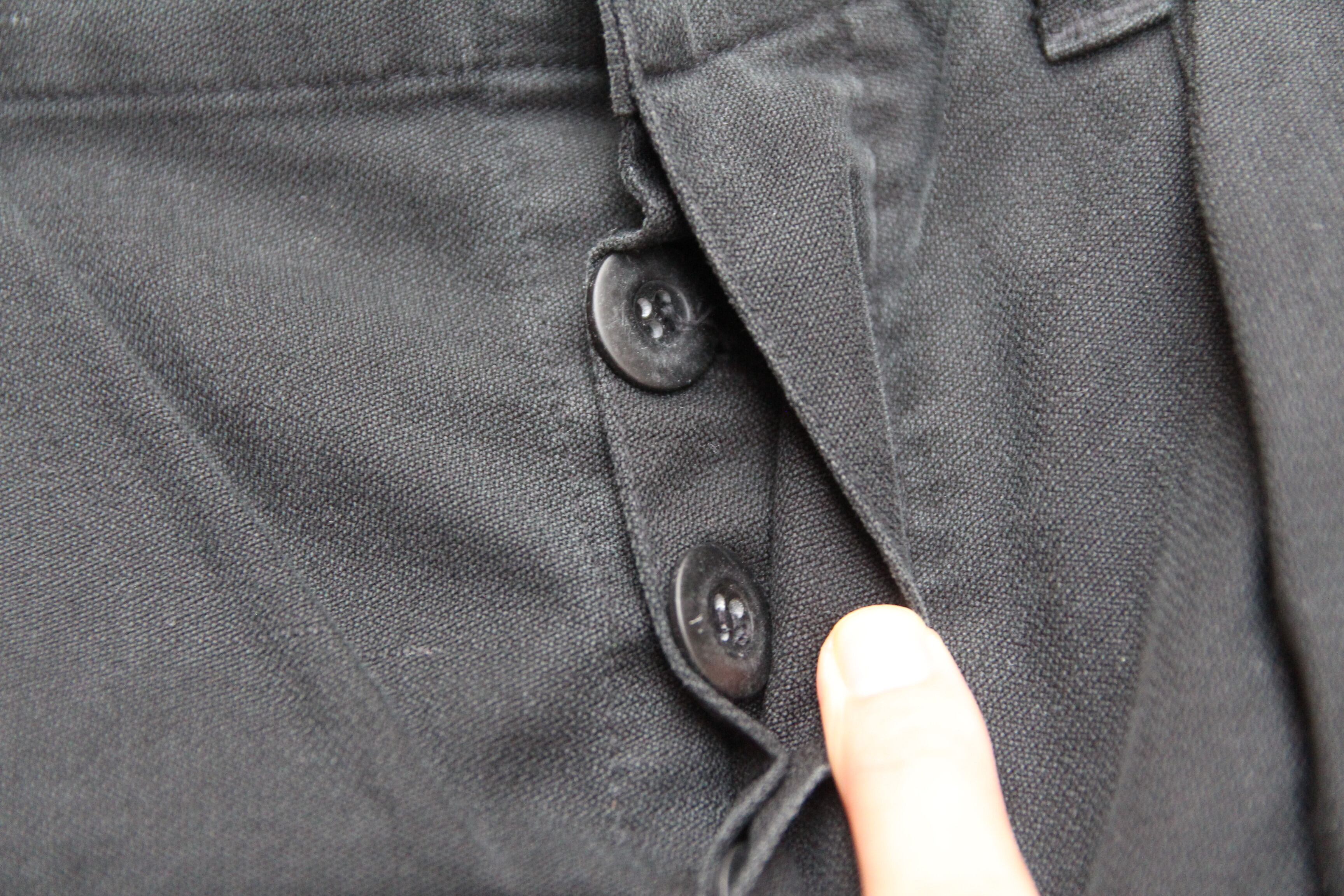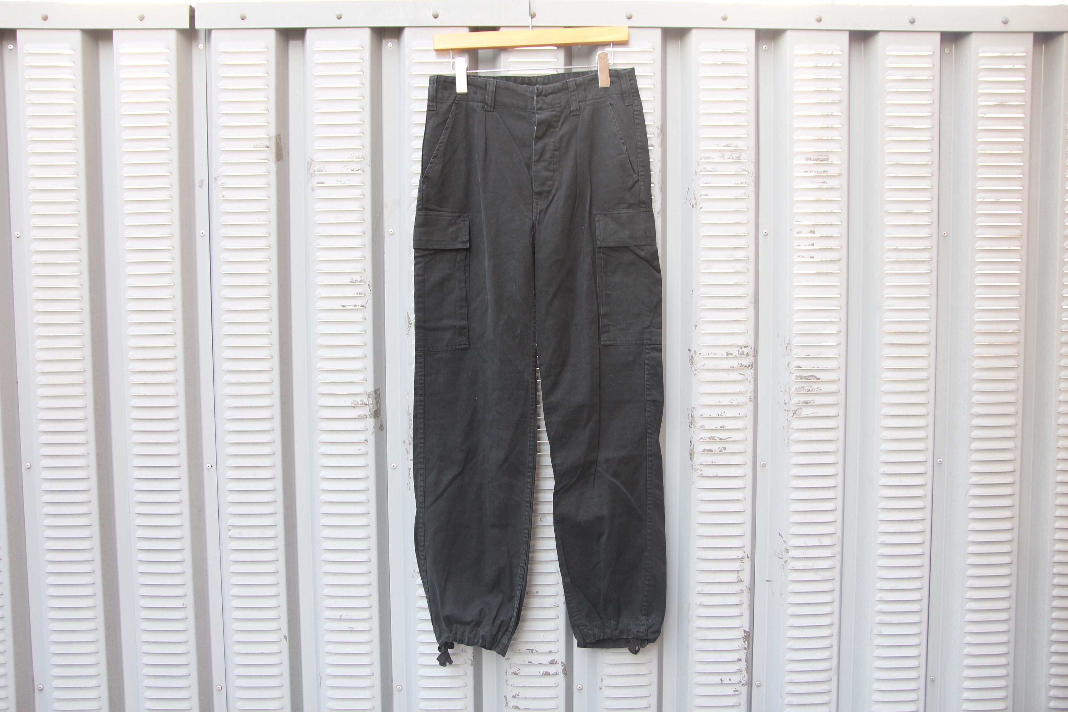 ブランド不明の活用性が高いカーゴパンツとなります。カーゴパンツは元々貨物船の荷役作業に従事されていた方達に穿かれていたということもあり生地の丈夫さや両膝脇にあるポケットの利便性が高いパンツです。今回入荷したカーゴパンツはミリタリーパンツモチーフでお手持ちのアイテムと合わせ易い黒という色味に裾リブが絞れるデザインになっております。バックは左のみの片ポケット仕様となっております。タグにはトルコ製表記が確認出来ます。ヨーロッパ生産と言う事もあり割と細めなシルエットとなりますのでカーゴパンツ特有のルーズなシルエットが苦手な方へは大変お勧めです。去年位からメンズ中心に人気を博しているカーゴパンツですのでお好きな方は是非この機会にご検討の程宜しくお願い致します。
