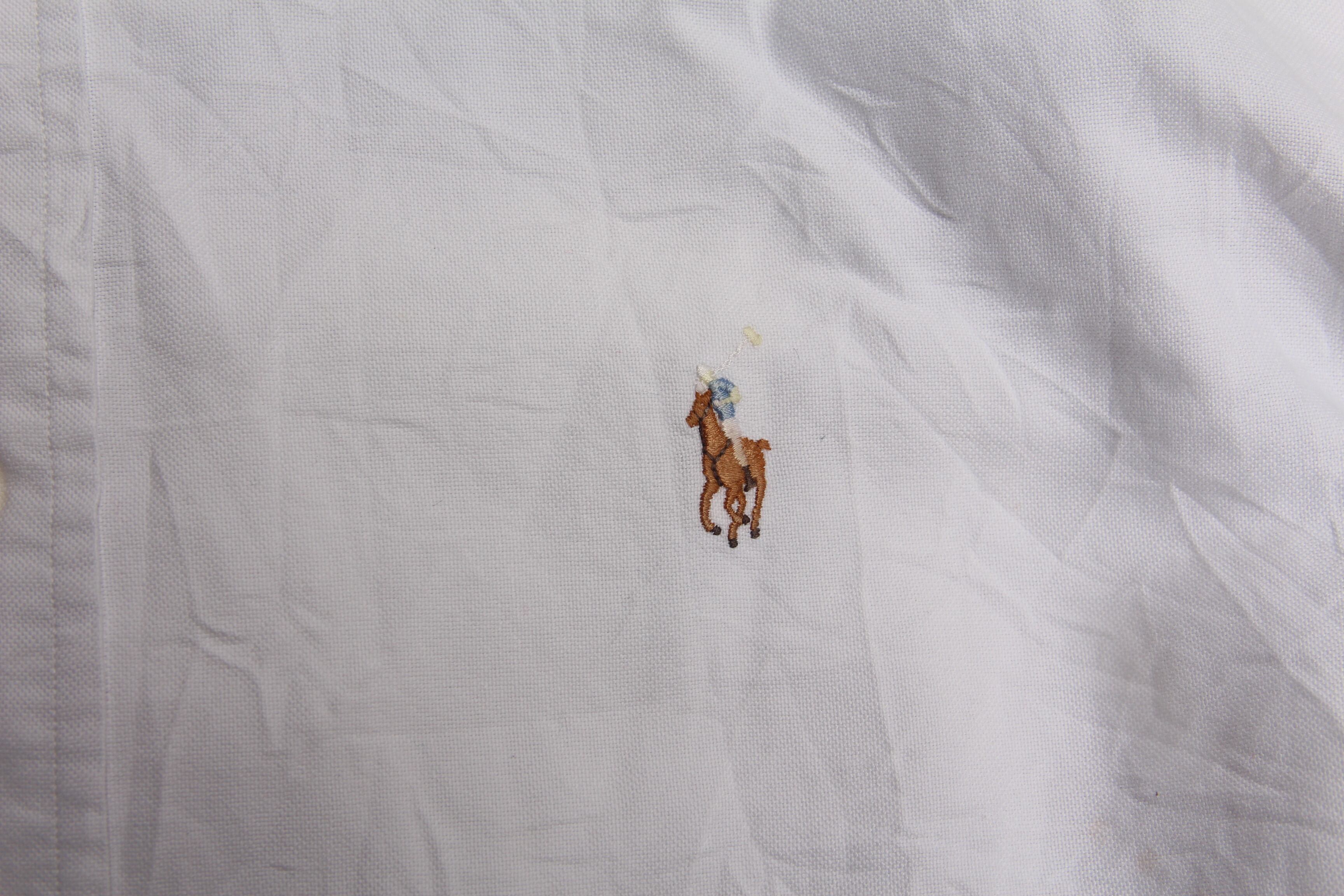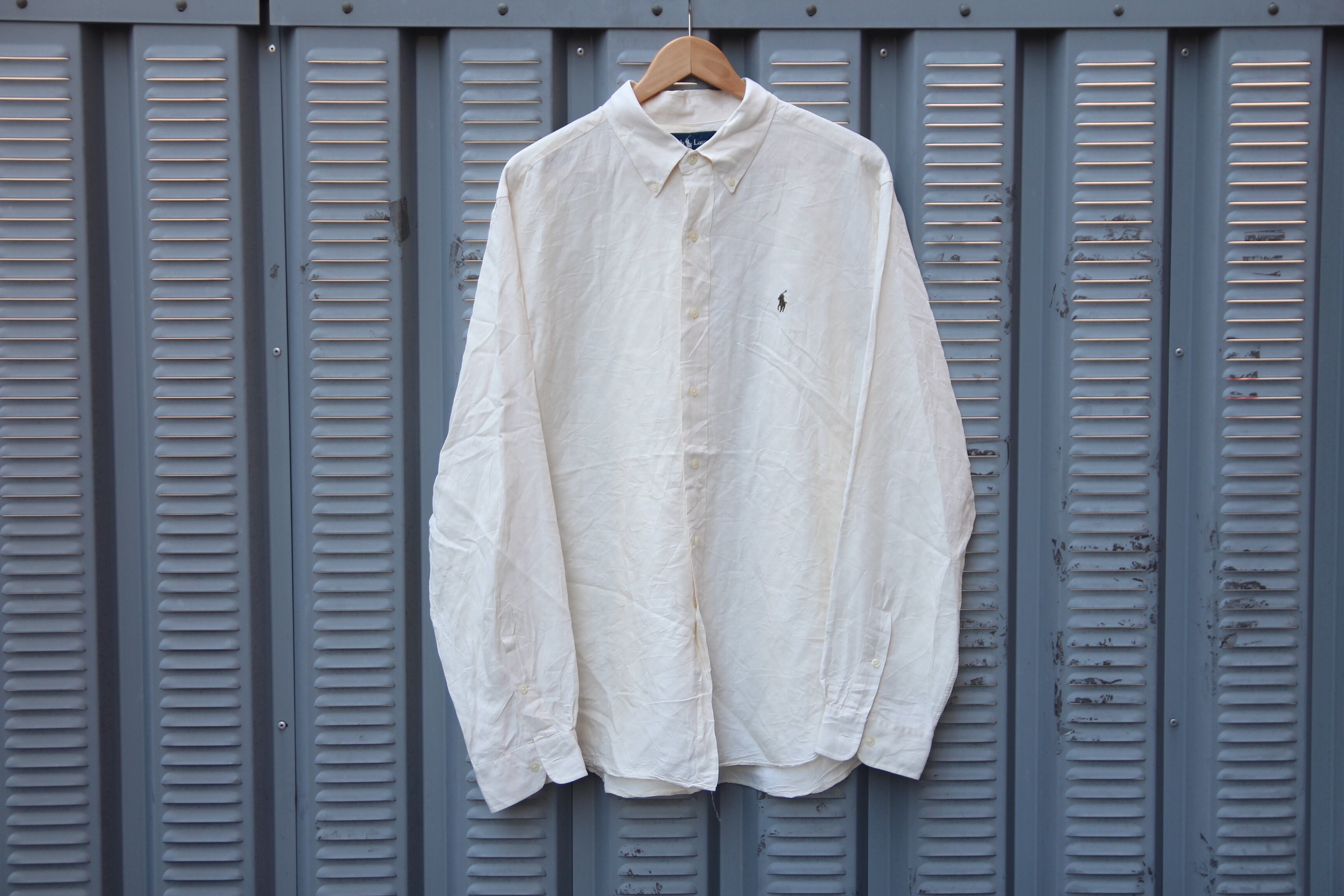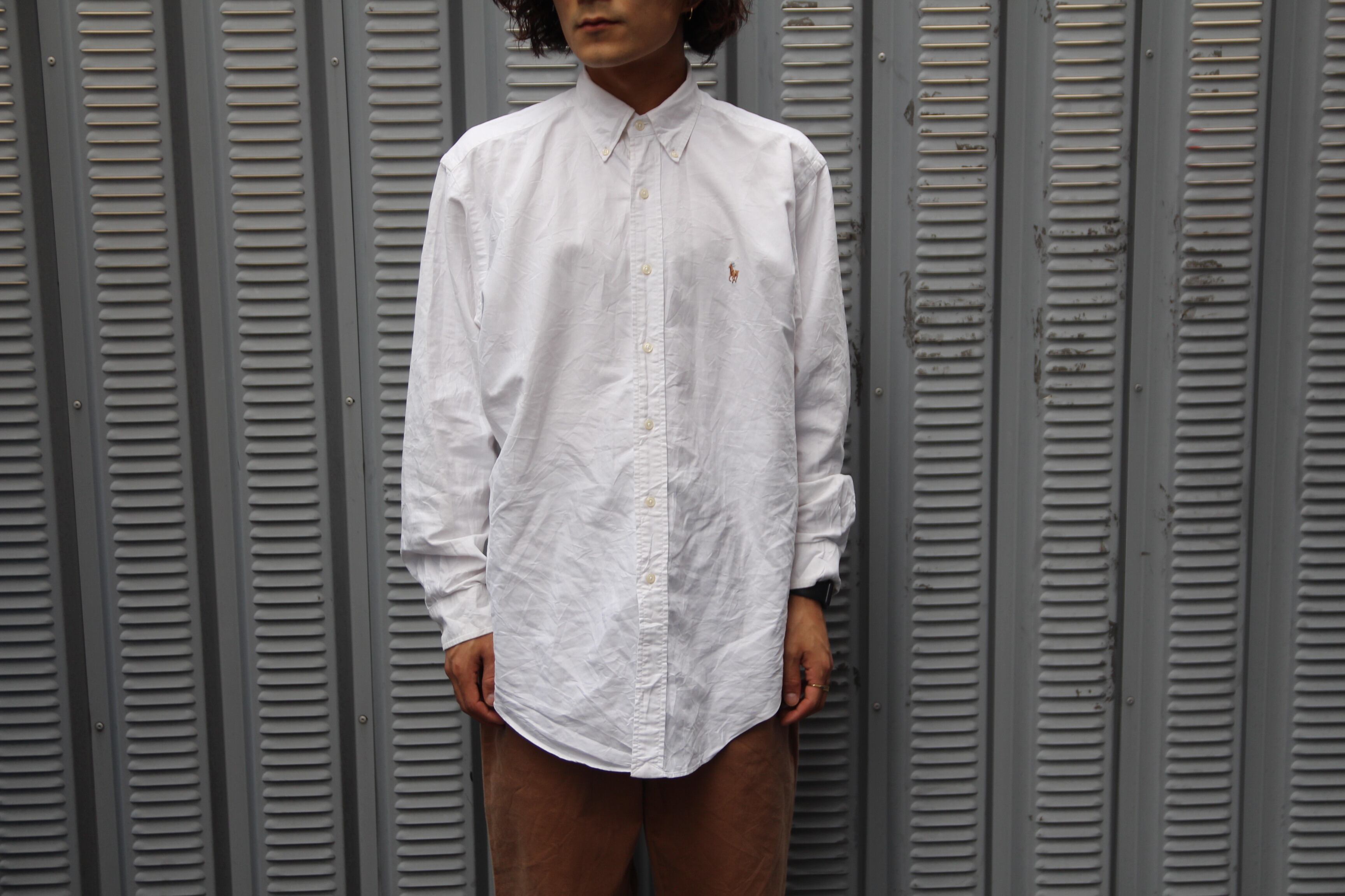 1990年代頃のRalph Lauren製ボタンダウンシャツとなります。ボタンダウンラインのYarmouthシリーズとなります。Yarmouthシリーズは普遍的なボタンダウンシャツが主なアイテムですが、襟の形や袖、裾のライン等細部まで拘られた良いシンプルなシャツと呼べるラインとなります。こちらは胸にブランドアイコンのポニーマークが入るラルフらしいシャツとなります。サイズ表記は15Hですが、ラルフの商品自体多少大き目な作りですので小柄な男性や女性等が着て頂ければビッグシルエットで着用頂けるのでそのサイズ感がお好きな方へも大変お勧めです。是非この機会にご検討下さい。