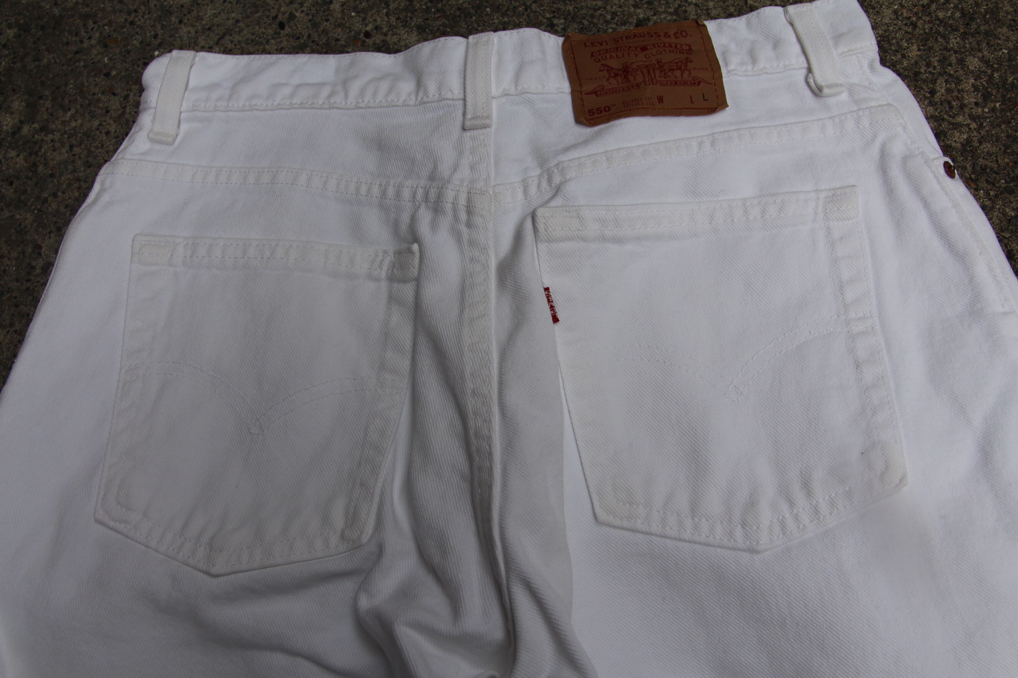 1990年代頃のLevis製ホワイトデニムパンツとなります。品番は近年人気の550となり、バルーンシルエットでテーパードが効いているモデルとなります。ホワイトカラーはインディゴブルーより玉数も少なく、更にUSA製となる為、希少価値が高いのでお探しの方も多いのでは無いでしょうか?ZipperはLevis刻印入りで紙パッチ、表記も綺麗に残っております。表記は15 Longとなりますが、実寸ではW33 L32程度と男性の方でも穿いて頂けるサイズ感ですので人気品番の550のホワイトデニムをお探しの方は是非この機会にご検討宜しくお願いします。