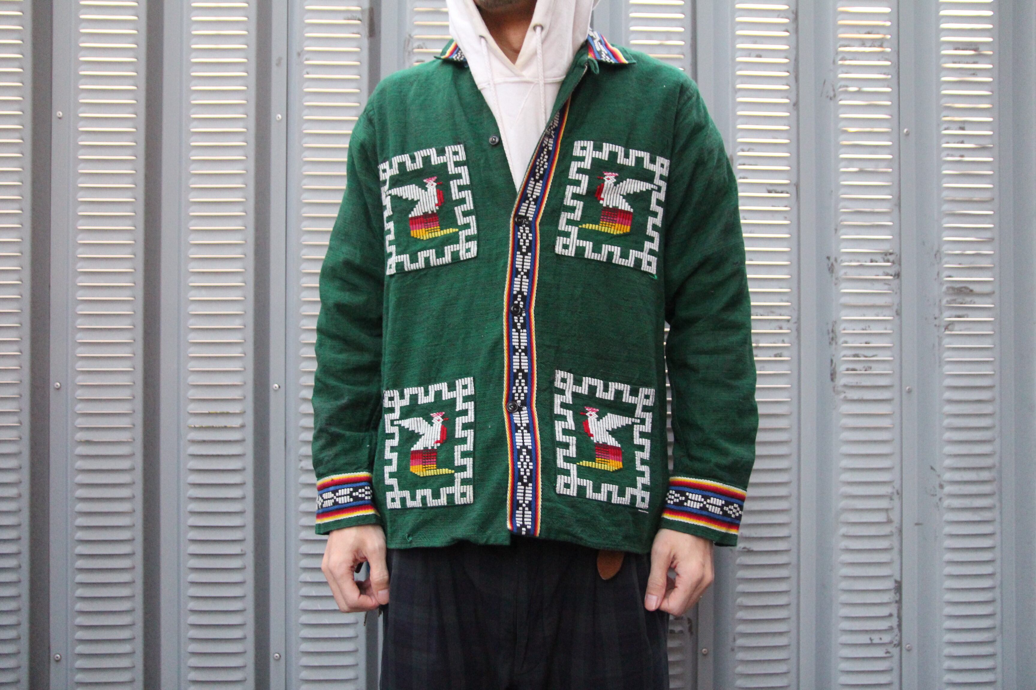 1980年以降に生産されたグアテマラシャツです。深みのあるグリーンにグアテマラシャツ独特のポップな刺繍が入った1着です。エスニック調でエッジの効いたデザインがポイントです。また全体的に統一感があり、シンメトリーな為コーディネートも組みやすく、意外に合わせやすさのあるアイテムです。お好きな方は是非この機会にご検討下さい。