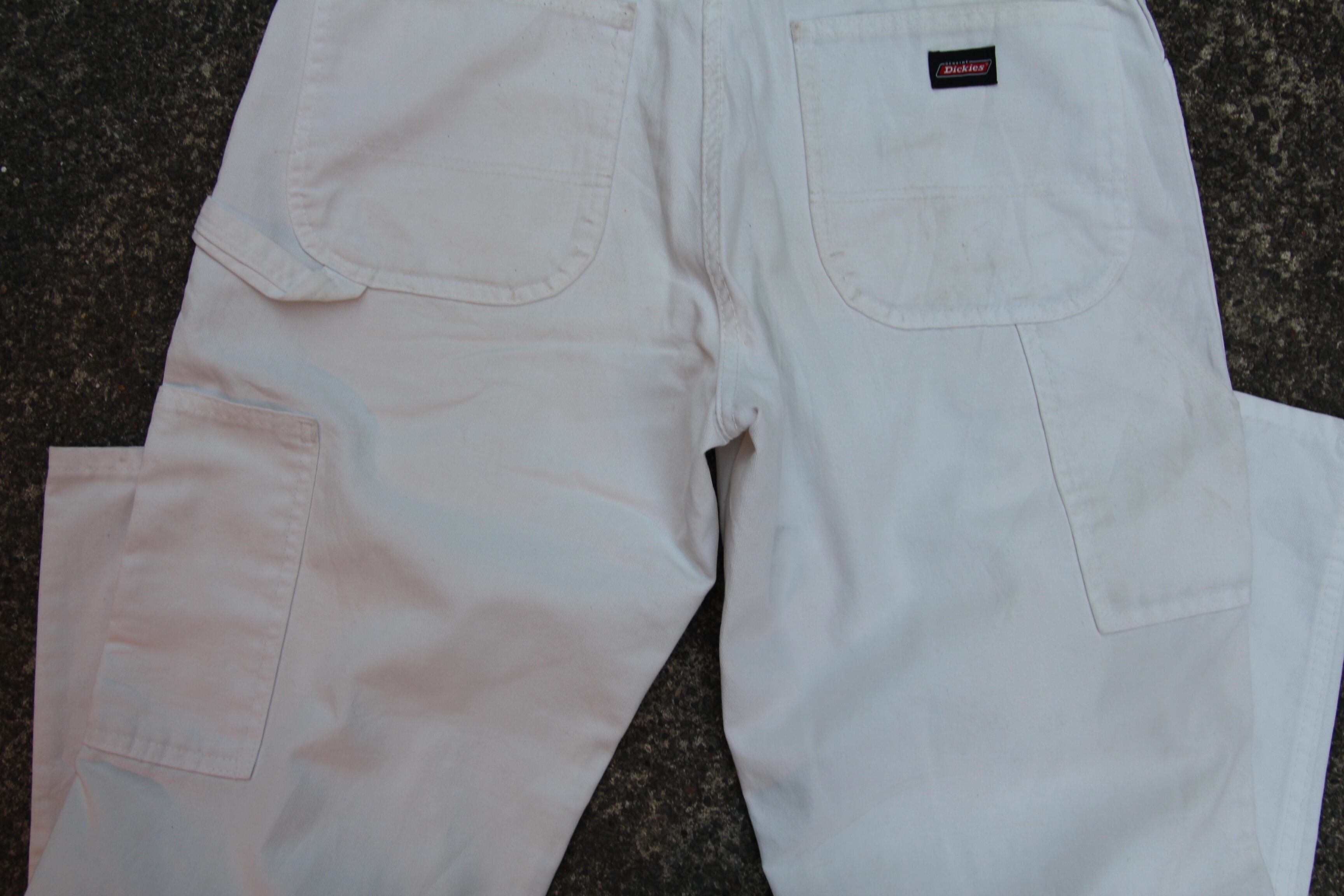 1922年から生産をスタートし、100周年を間近に控える”Dickies”社のホワイトペインターパンツになります。ポリエステル65%コットン35%という黄金比率で構成されたT/Cツイル生地を使ったディッキーズならではの非常にタフな素材で作られています。ペインターパンツならではルーズなシルエットとディテールが特徴的です。ホワイトカラーの爽やかな印象とペインターパンツの野暮ったさが絶妙なバランスを演出しており目を惹く1着となっております。お好きな方は是非この機会にご検討下さい。