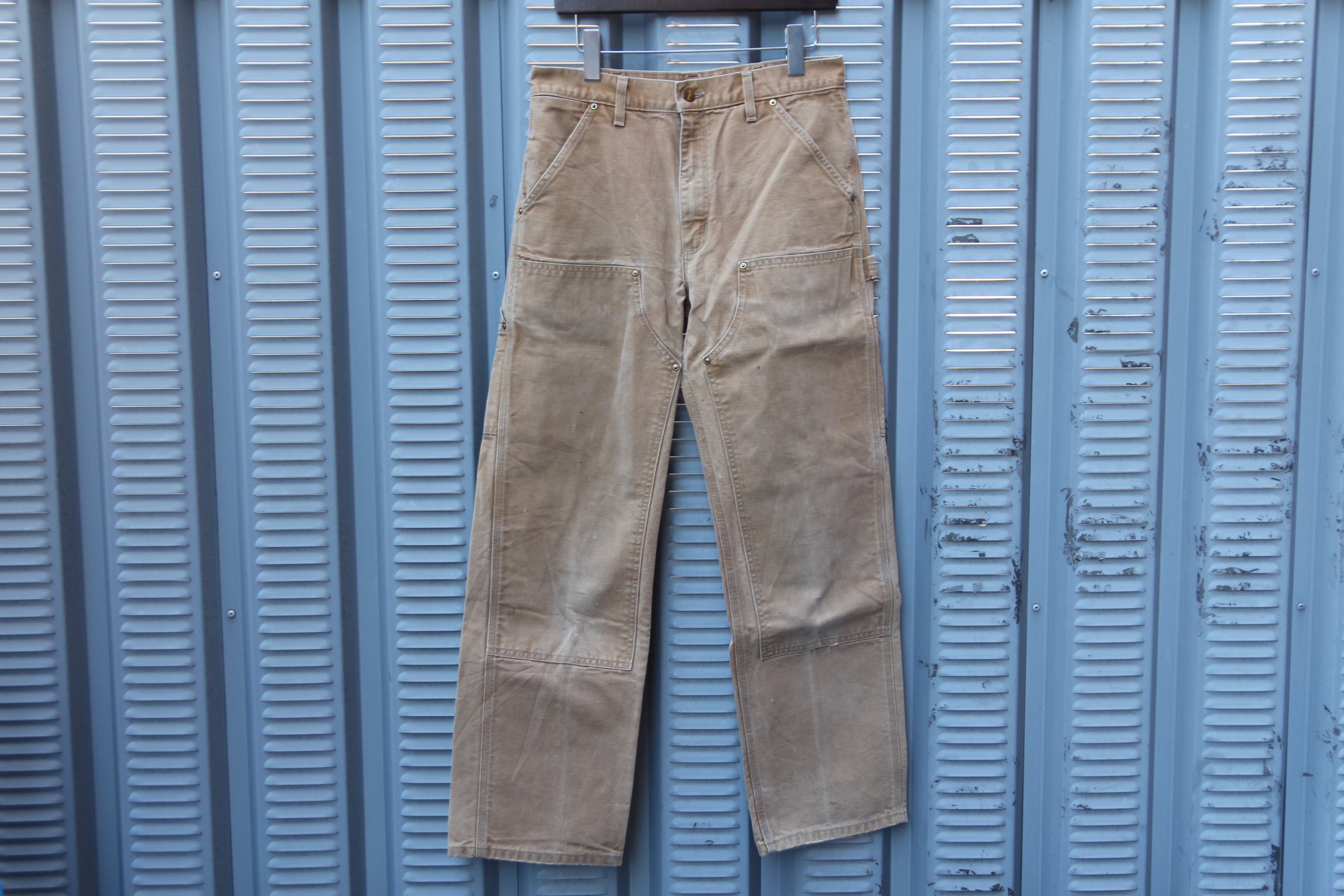 1990年代頃のCarhartt製ダックペインターパンツになります。ダブルニー仕様のダック地ペインターパンツと言えばカーハート社を思い浮かべる方も多い程人気の高いアメリカ老舗ワークブランドですが、若い方の中でもアクティブジャケット等のジャケット熱が高い中、ペインターパンツも徐々に人気が上がって来ているペインターパンツとなります。フロントダブルニー仕様ですので耐久性も高い上にデザインとしても可愛いですし、程良い緩さのシルエットが男女共に受けておりますね。こちらは古着らしい色褪せして雰囲気抜群のお色ですし、今では数も減って来ている希少なUSA製となっております。様々なスタイルに合わせ易い形ですし、防寒性もそれなりにありますのでお探しだった方は是非この機会にご検討の程宜しくお願いします。