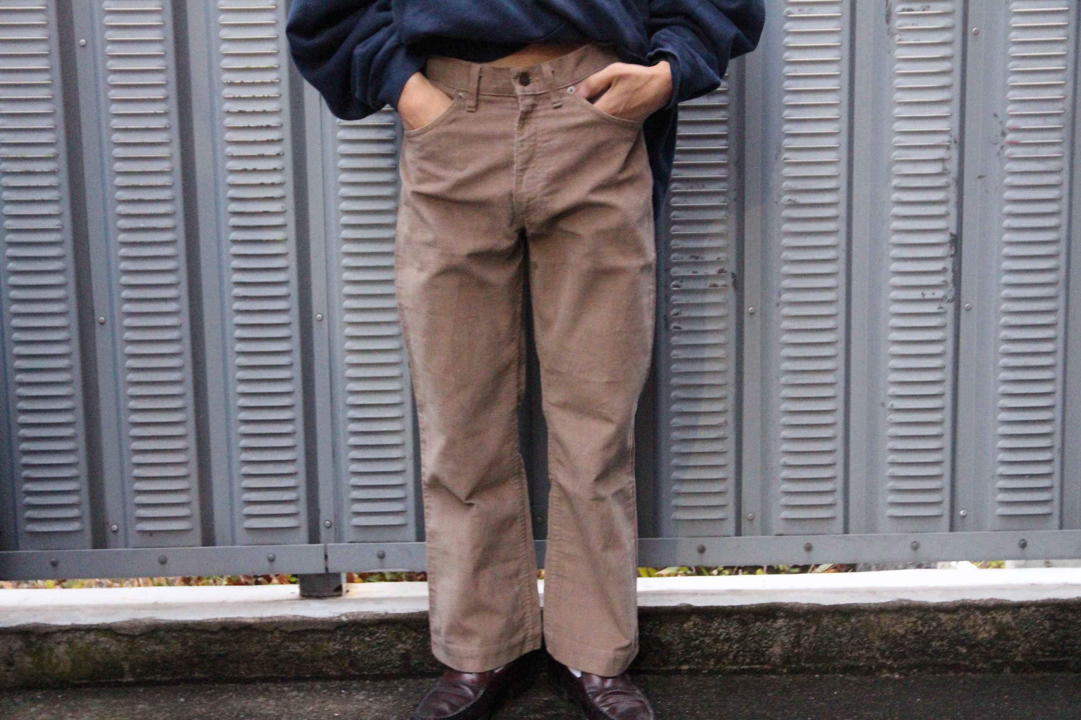1980年代頃のLev's社製517コーデュロイパンツになります。綺麗なブーツカットラインで膝から裾にかけて広がるシルエットが特徴的な1着になっております。またそのシルエットの良さがスタイルを綺麗に見せてくれる点もポイントです。優しいブラウンカラーにコーデユロイ素材という温かみがあり防寒性も高い為、冬季期間にはかなり履いていただけるかとも思われます。カジュアルやウェスタンスタイルなど様々なコーデにお使い頂けます。是非この機会にご検討の程宜しくお願いします。