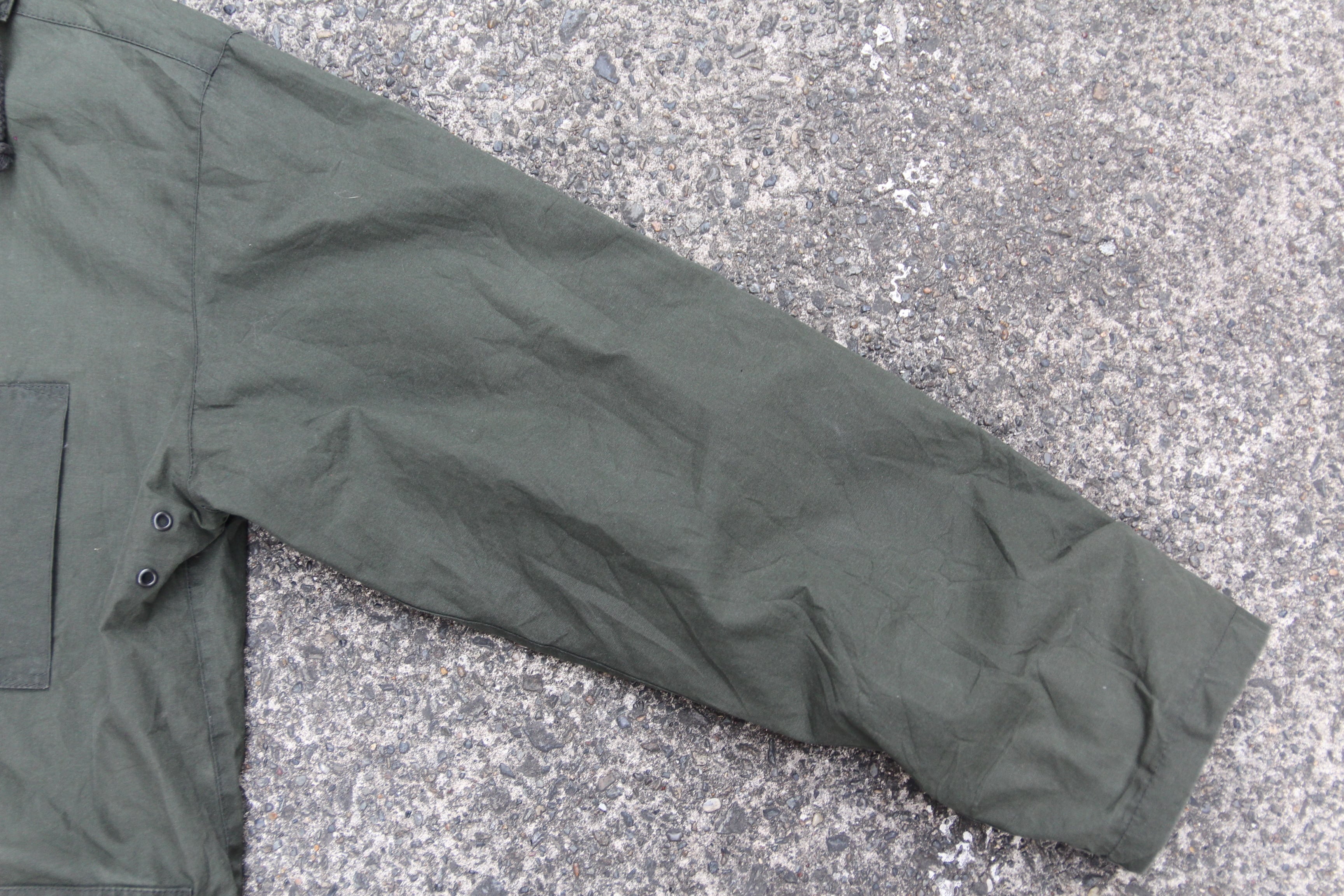 1990年代頃のLakeline製のオイルドジャケットになります。BarbourやBelstaff等の英国ブランドで良く見掛ける生地にオイルを染み込ませたアイテムで安定した人気がありますが、こちらも英国らしいオリーブカラーでライナーがタータンチェック柄、襟がコーデュロイ張りとなっております。4つポケットタイプで、胸部分に付くポケットは多少高めに付きます。取り外し可能のフードが付きます。サイズ表記は薄れており確認出来ませんが、実寸では38程度かと思われます。ショート丈で形的にはBarbourのBedale Jacketに近い形となっております。Barbourの価格が大変高騰しておりますので比較的安値で質の良い物をお探しだった方は是非この機会にご検討の程宜しくお願いします。