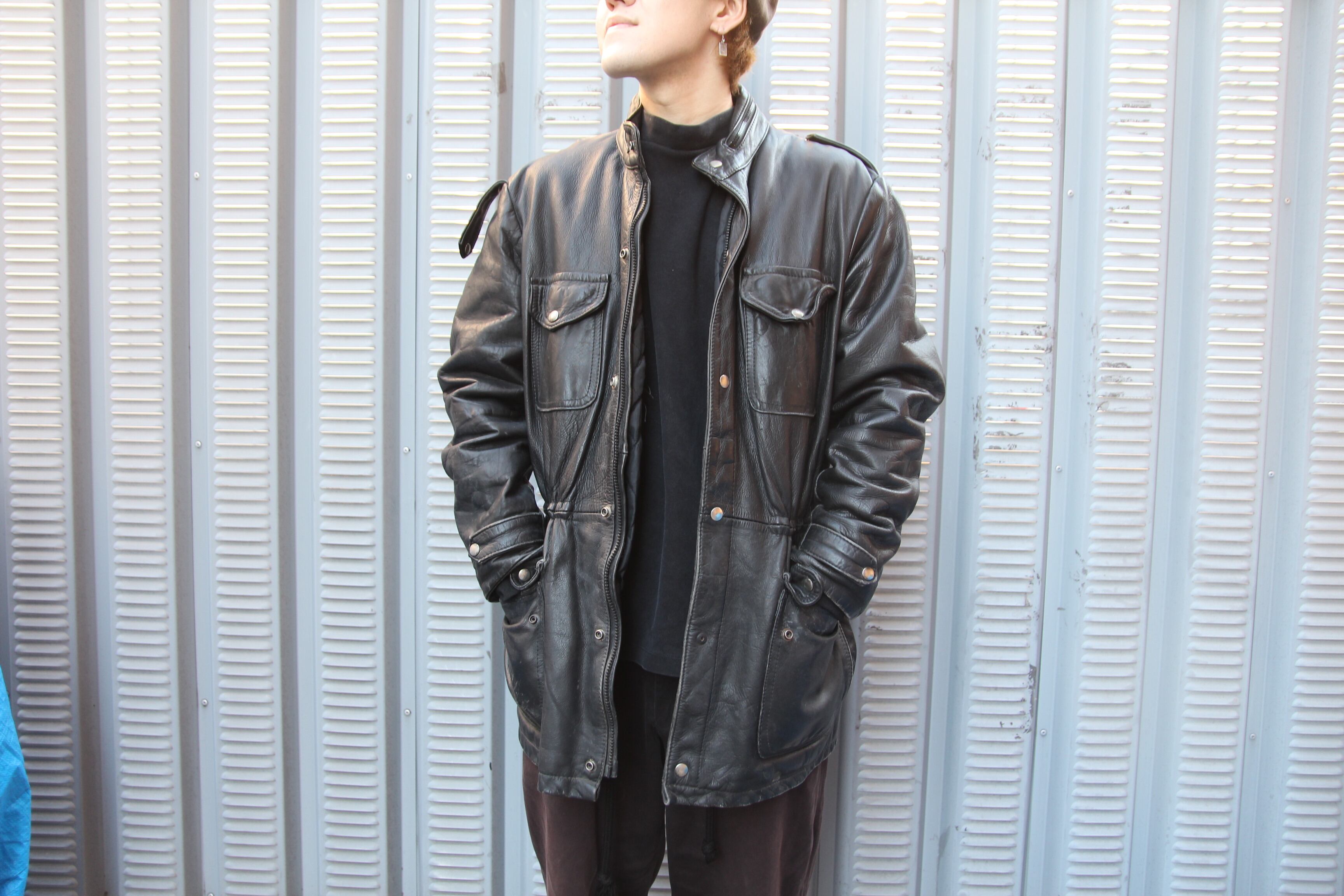 1980年代頃のSahanaのレザージャケットになります。Mー65のフィールドジャケットを連想させる使い勝手の良いデザインの一着です。革質が柔らかいので着て頂きやすく、サイズは44と大きめですが、着用頂くと比較的身幅も細めで程良いビックシルエットで着て頂けます。状態も良く、雰囲気のいい一着ですので気になる方、お探しの方は是非この機会にご検討下さい。