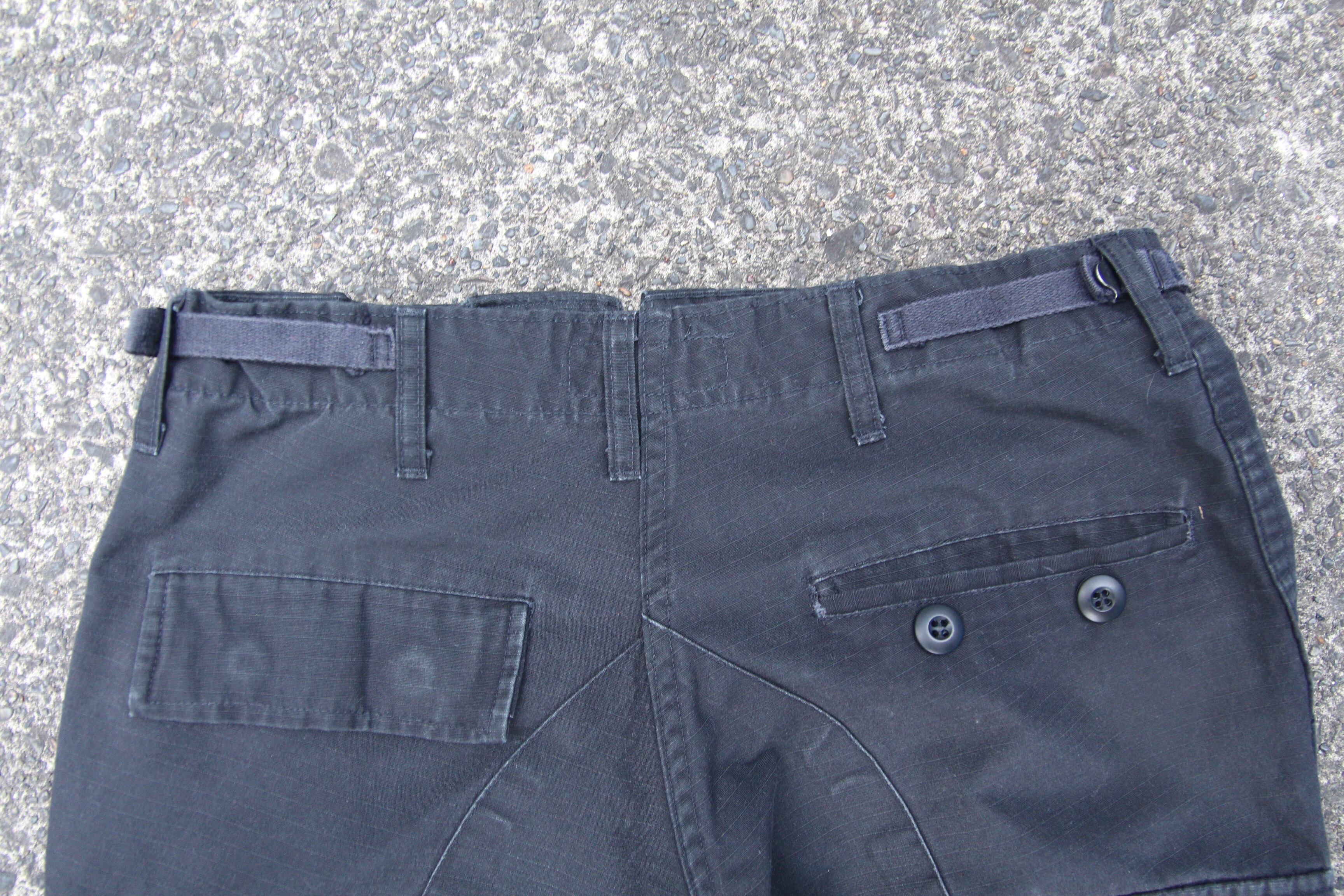 1990年頃のPROPPER製6ポケットカーゴパンツになります。PRPPER(プロッパ―)は1967年にアメリカで創業し、アメリカ軍だけでなく警察などのアメリカ法執行機関のユニフォームやウェアの納入実績を持つアパレルメーカーです。機能性とデザイン性を重視したコレクションは、世界中から多くの支持を得ています。実績のあるアパレルメーカーなだけあり、そのクオリティはお墨付きです。裾にはドロープが付いており、裾にかけてテーパードの効いた程良い太さのシルエットで、カラーリングも合わせ易いブラックと様々なコーディネートに取り入れ易い1着かと思います。ミリタリー感がそこまでなくタウンユースに使い易い、丈夫で機能性、デザイン性に長けた今が旬の大変重宝するアイテムかと思いますのでお好きな方、お探しの方は是非この機会にご検討の程宜しくお願いします。