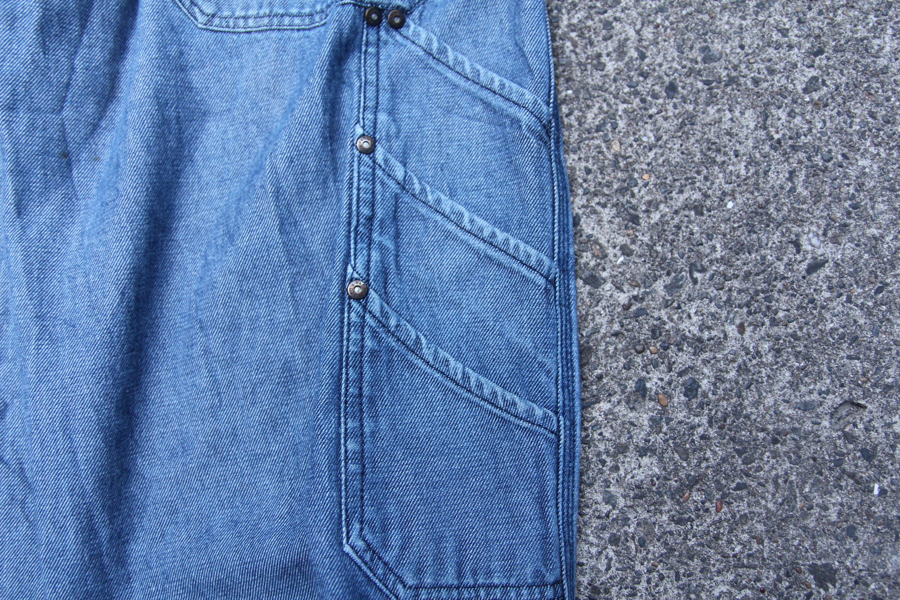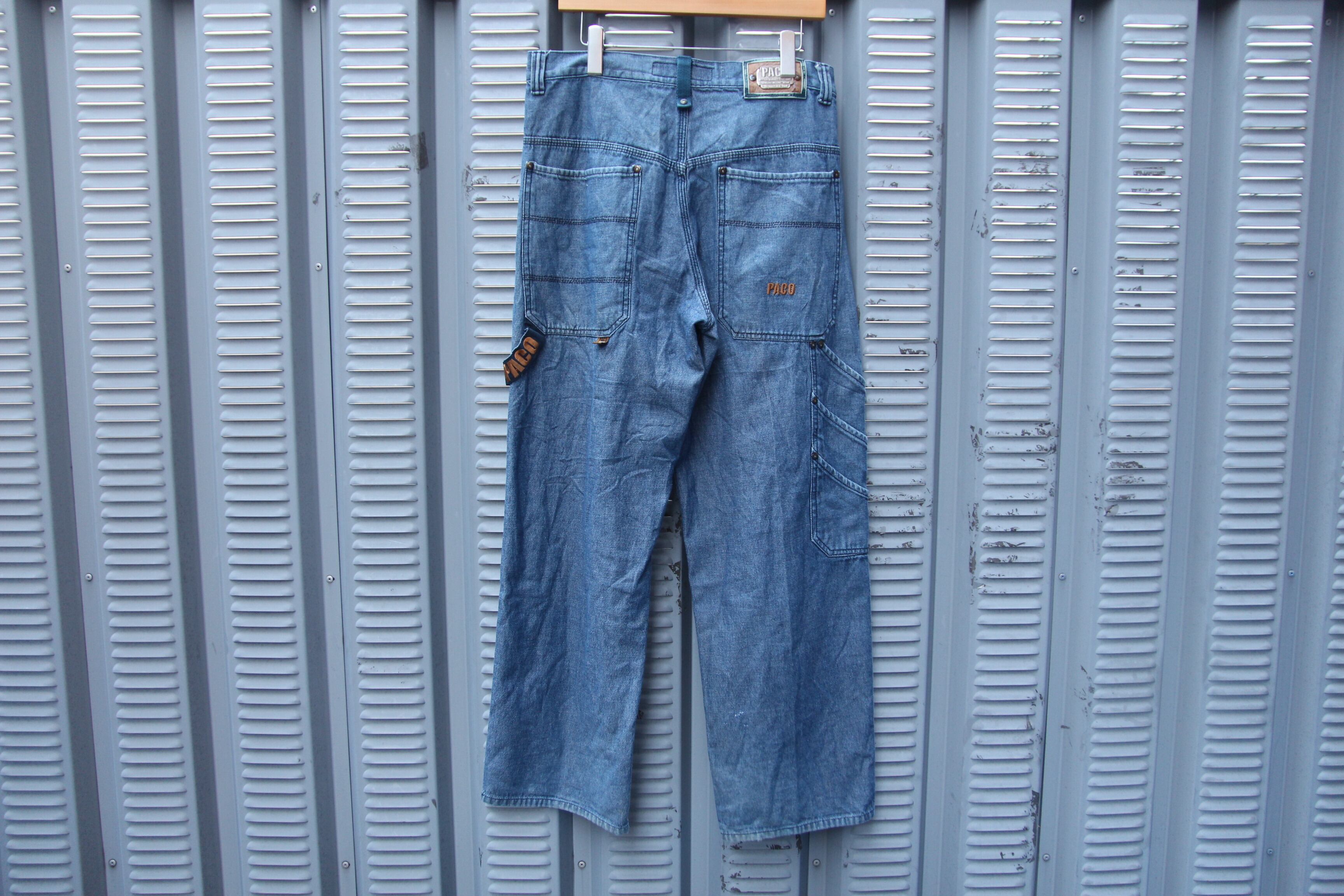 1990年頃のPaco製ペインターパンツになります。Paco Jeansは世界的にも評価の高いニューヨーク発のカルチャーブランドです。日本市場にはあまり流通していませんが、本国アメリカでは人気アーティストがPVやライブなどで使用したことで知られています。こちらの商品はグレー味のある雰囲気の良いカラーリングで、金属製のプレートやハンマーループの刺繡に至るまでこだわりを感じる豪華デザインの1着です。ペインターならではの野暮ったいシルエットと、細部に至るまでこだわりを感じさせるディテールが何とも魅力的な1着ですので、お好きな方、お探しだった方は是非この機会にご検討の程宜しくお願いします。