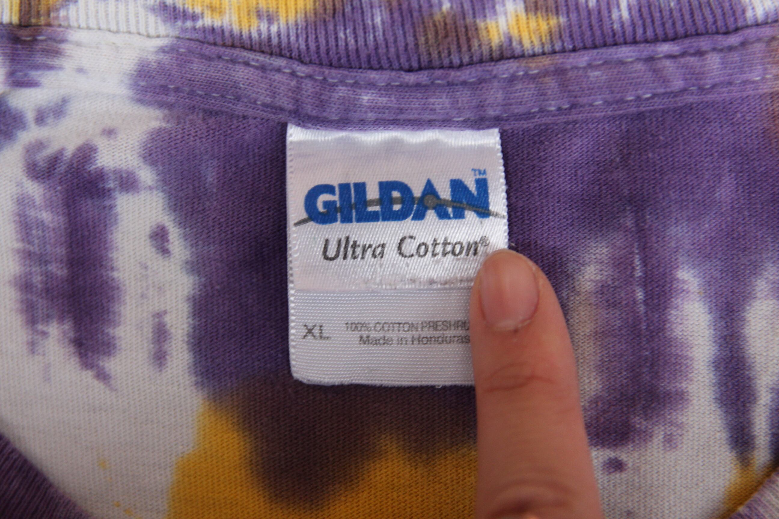 Gildan製タイダイTシャツです。夏時期のアイテムとして定番のタイダイ染のアイテムですが、こちらの商品はイエローとパープルの配色でセンスの良さが光るカラーリングが可愛らしく、フロント中央の"Winslow Elementary"のプリントが最高にクールな1着です。ビックサイズの柔らかいコットン素材で、くたっとしたボディの非常に着心地のいい夏時期にピッタリなアイテムかと思います。ビックサイズのタイダイ染めアイテムは年々球数が減ってきているアイテムかと思いますので、気になる方はお早めにご検討下さい。