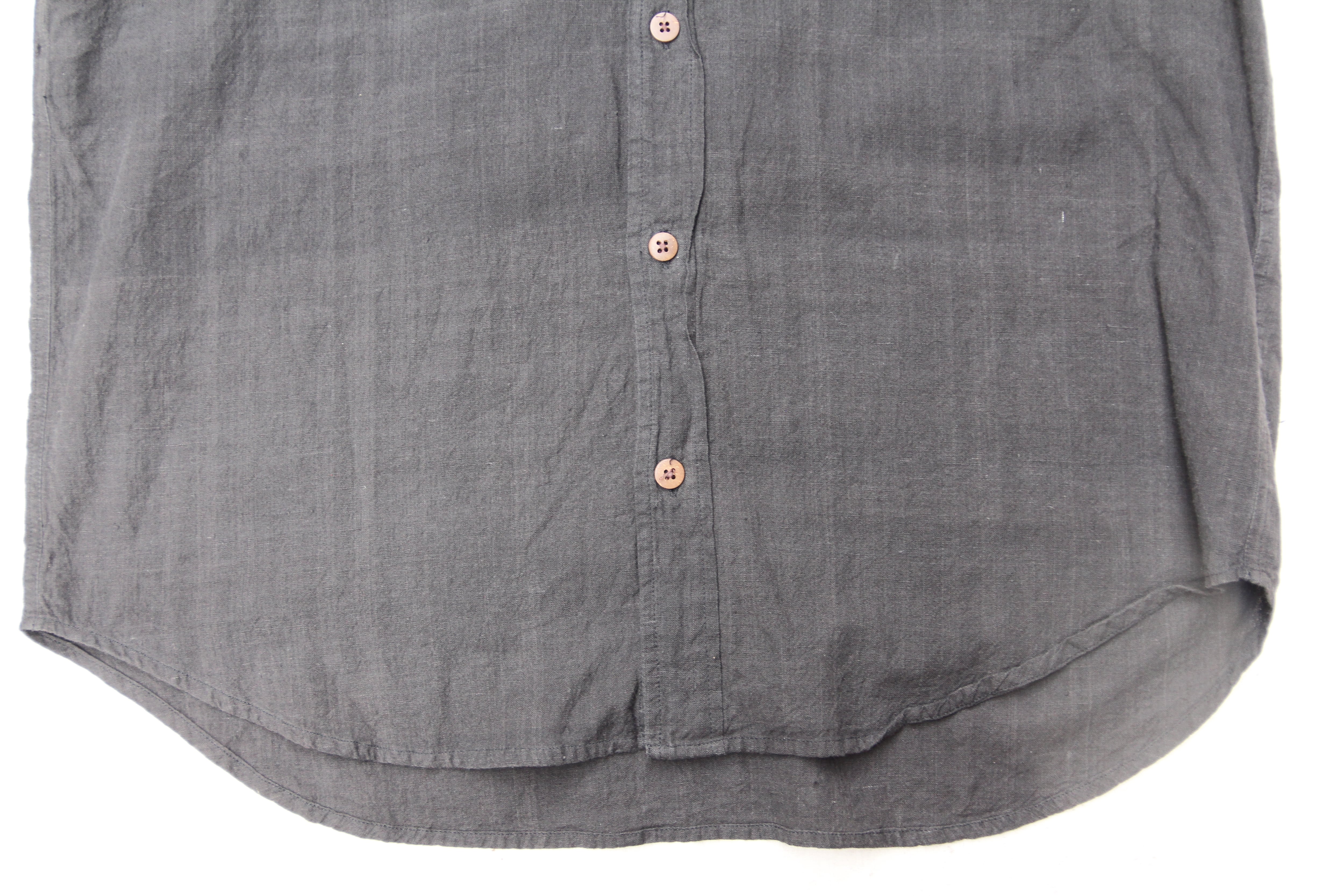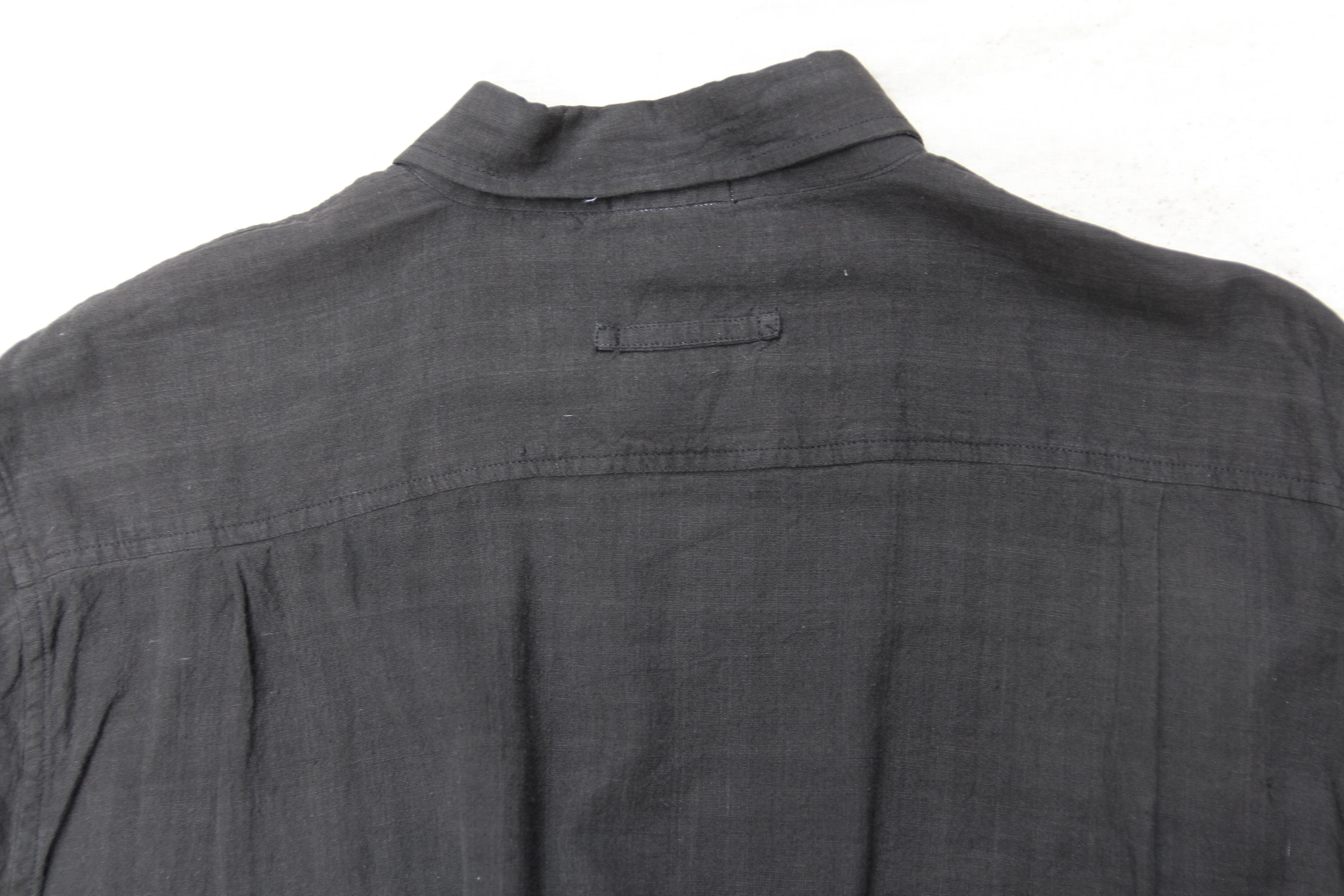 1990年代のFabindia製のコットンシャツになります。インディアファブリックを使用したインドコットンのさらっとした着心地と柔らかく独特な質感が魅力的な1着です。ボタンダウン仕様のしっかりとした作りで、インドファブリックならではの風合いのいいブラックのカラーリングとウッドボタン仕様の異国感のあるディティールが非常に雰囲気が良く、シンプルながらどこか個性的なセンスの良さが光る1着かと思います。サイズ感も大き過ぎない程良いオーバーサイズですので、気になる方、お好きな方は是非ご検討下さい。