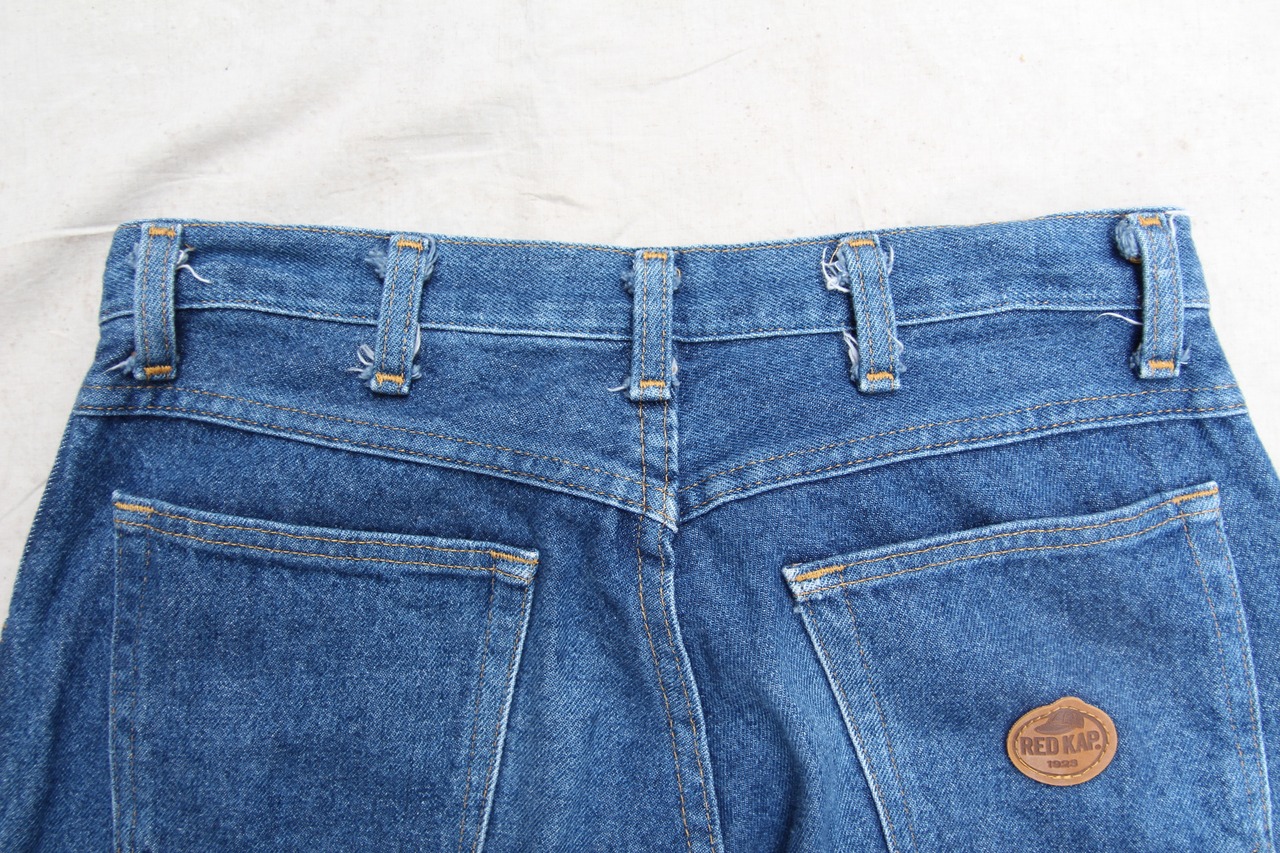 1990年代頃のRED KAP社製のデニムパンツになります。トラウザータイプのワークパンツで有名なブランドですが、こちらはコインポケットの付く5ポケット仕様の一般的なデニムパンツの様なシンプルなデザインの1着です。自然で綺麗な色落ちで、程良い厚みの柔らかい生地感ですので、普段履きに最適な1本かと思います。ワークブランド特有の動き易さに加えて、様々なコーディネートに合わせやすく気負わずサラッと履ける、1着持っていると大変重宝するアイテムかと思いますので、お探しだった方、お好きな方は是非この機会にご検討下さい。