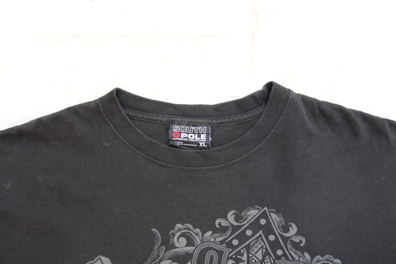 1990~2000年代初頭頃のsouthPaul製クルーネックプリントTシャツになります。サウスポールは、1991年NYでヒップホップウエアブランドとして誕生して以来、様々なストリートシーンで活躍して来たブランドになります。前面には大きくsouthPaulのロゴにlucky nightの文字、胸にルーレットの装飾品があります。背面右下にはトランプが覗くようなデザインがプリントされております。この様な大胆なデザインかつオーバーサイズなサイズとシルエットですので、ラッパーやヒップホップ、ストリートカルチャーがお好きな方には非常に好まれるかと思います。お好きな方は是非この機会にご検討下さい。
