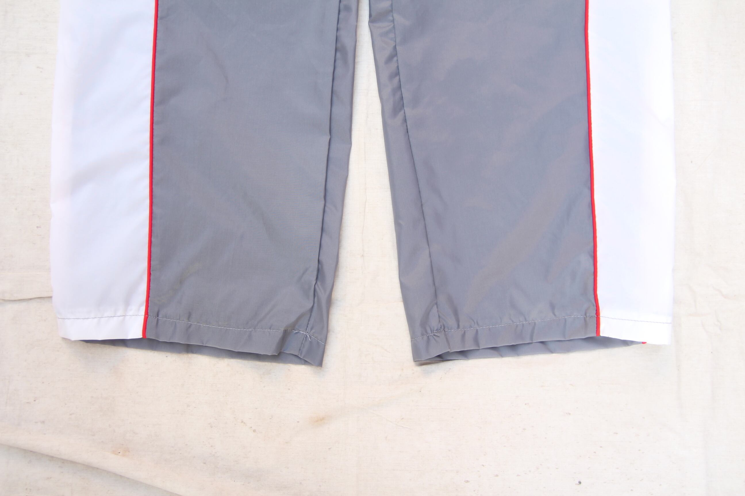 1980年代頃のconverse製ナイロンパンツになります。赤、白、グレー、青の好配色に左腿あたりにコンバースのロゴが光る格好良い1着になっております。ウエストにはゴム(ドローコード)が入り、伸縮性がある上にドローコードの使用になっており腰回りを絞れるので、どの体系の方でも気兼ねなく履いて頂ける1本です。フロントはジップタイプで、SCOVILL社のジップが付きます。ナイロンパンツではプラスチック製のYKK等が多く見られますが、こちらはSCOVILLのジップが付くのは珍しいかと思います。90年代リバイバルブームに伴い、スケーター、ストリートスタイルが流行りナイロンパンツやラインパンツが一気に人気になった近年、定番スポーツブランドじゃないあえてスニーカーメインのブランドという、他とあまり被らない感じもポイントが高いですね。スタイリングも王道にスケーター、ストリートで合わせるのも良し、ジャケットやドレッシーなアイテムの外しとして使っても大変良い、非常に万能なナイロンパンツだと思います。是非お好きな方やこの手のナイロンパンツをお探しだった方は是非この機会にご検討下さい。