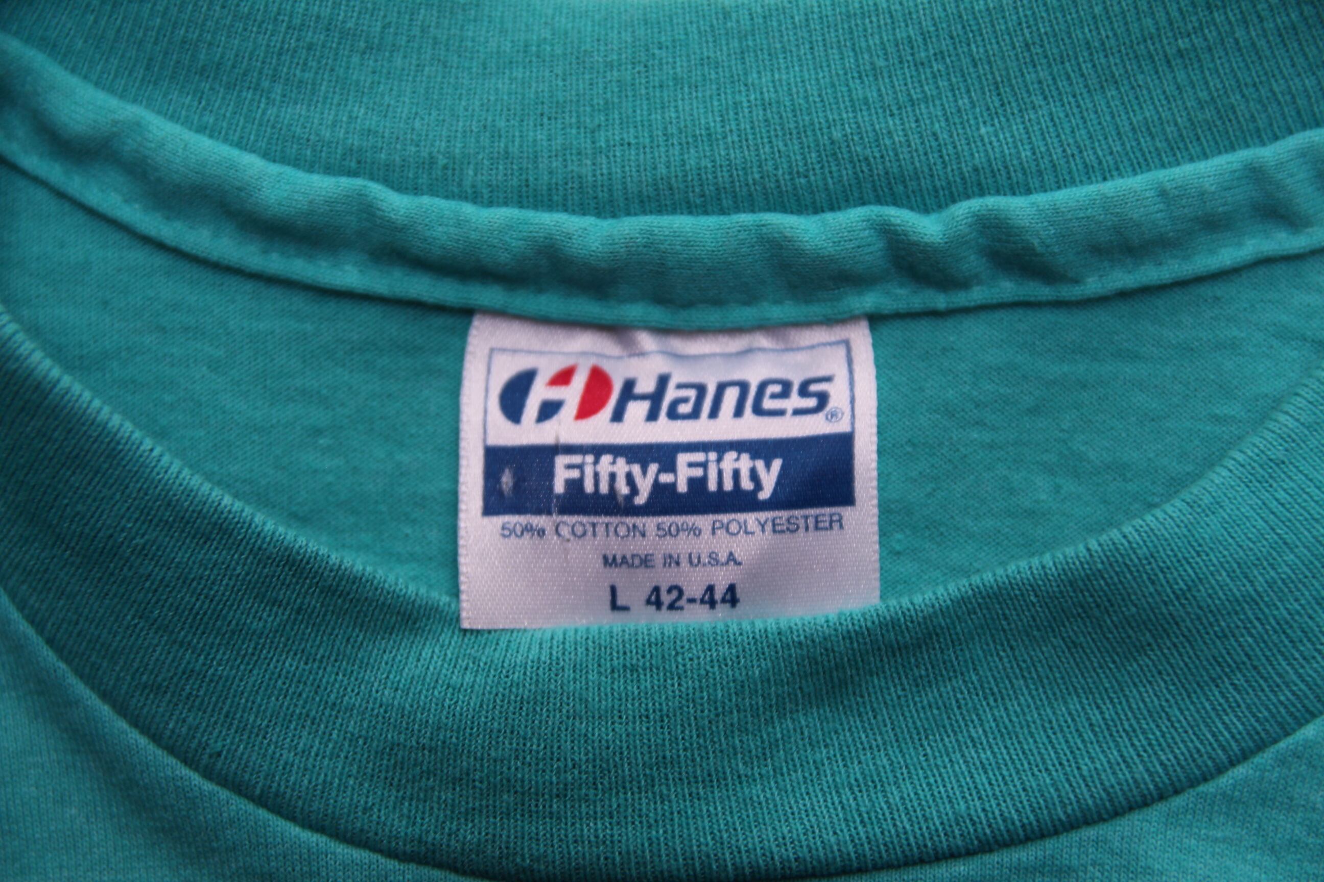 1980年代頃のHanes製プリントTシャツになります。こちらはHanesの中でもコットンとポリエステルが混紡しているボディになりまして、80年代頃に多い素材感になります。ポリエステルが入ることにより、シワに強くなり着込む毎に特有のテロっとした質感をお楽しみ頂けます。近年は若い方中心にオールコットンよりもポリエステル混紡のボディの方が好んで着てらっしゃる方も多い程です。カラーは綺麗なサックスブルーに手書き風のフォントでボストンの文字が入ります。シンプルなプリントになりますが、カラーとプリントが喧嘩せずに非常に良いバランスとなっております。男性女性問わずお使い頂けるこちらのTシャツはお好きな方も多いかと思います。是非この機会にご検討下さい。
