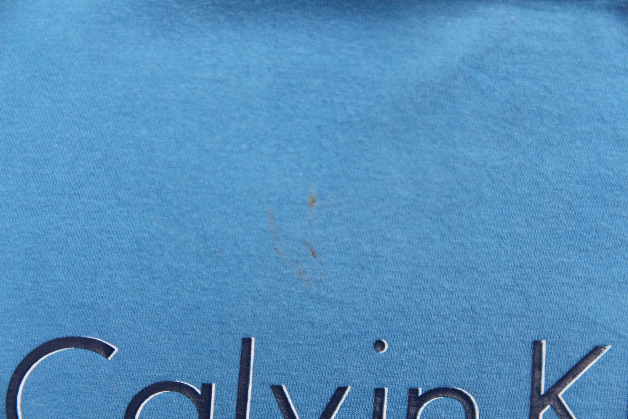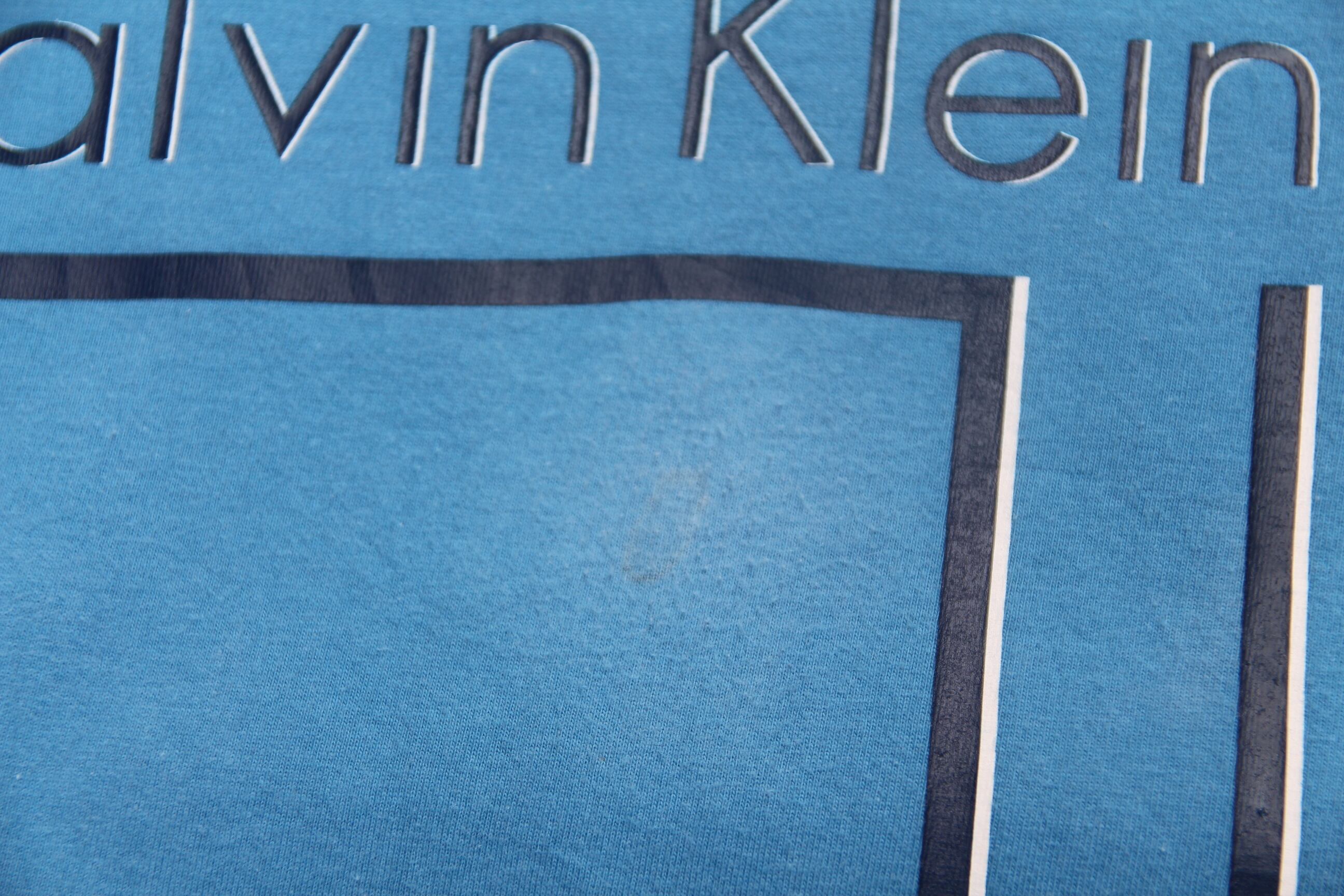 1990年代以降頃のカルバンクライン製クルーネックプリントTシャツになります。アメリカを代表するデザイナーブランドのカルバンクライン。カルバンクラインといえばCKロゴのみ等シンプルなデザイン物が多いイメージですが、カルバンクラインらしいフロントのプリントとブランドロゴが大変格好良いです。カラーもサックスブルーがとても綺麗でモードなスタイリングにもカジュアルに着こなして頂いてもどちらでも合わせられる万能なTシャツかと思います。このようなデザイナーブランドのオールド物を古着と合わせるスタイルは大変新鮮かと思いますのでお好きな方やお探しだった方は是非この機会にご検討ください。