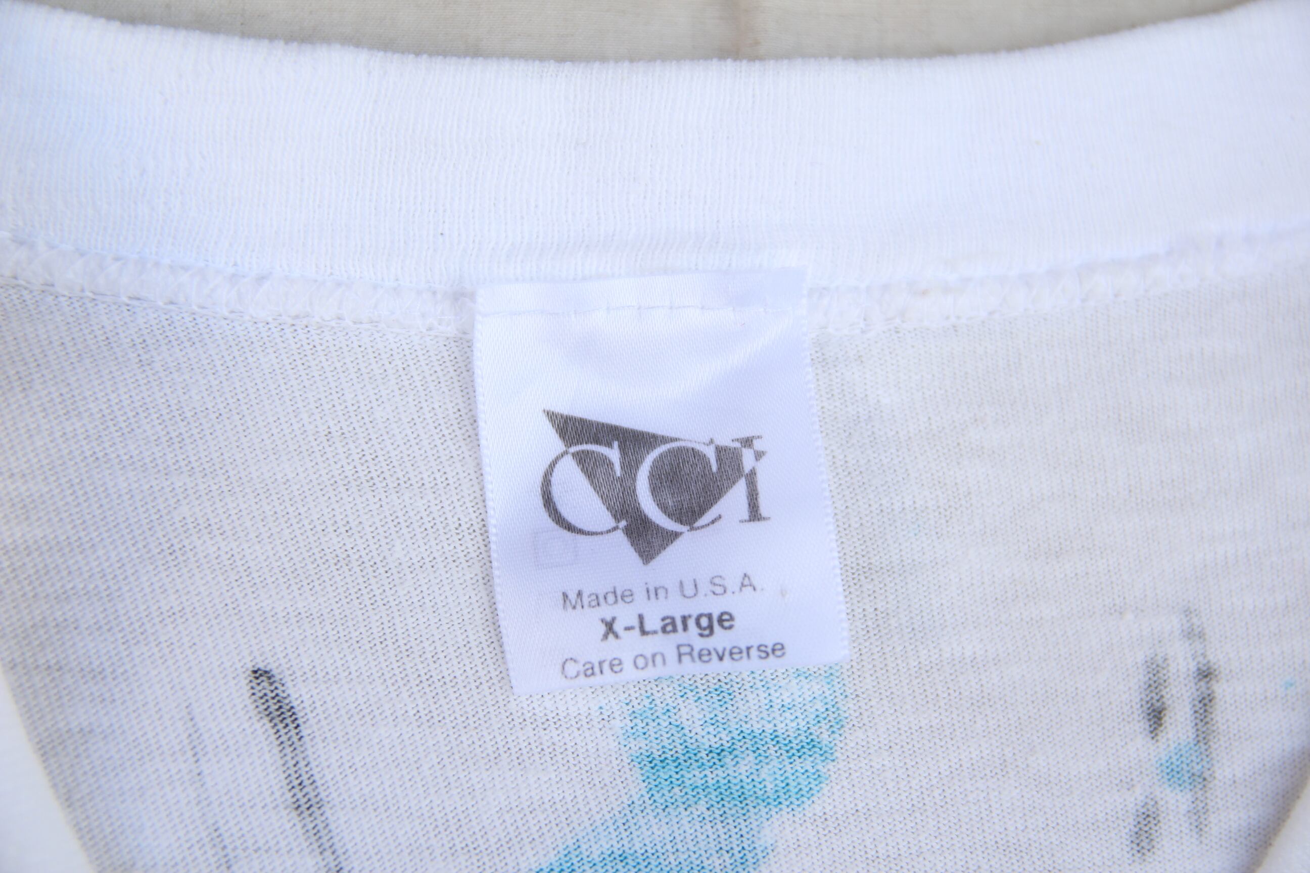 1992年製CCI製のNeil DiamondバンドツアーTシャツになります。ニール・ダイアモンドは74年にグラミー賞も受賞し、全世界で1億枚以上のCD、レコードを売り上げているアメリカの歌手兼作曲家、プロデューサーです。こちらは1991~1993年にかけて行われたニールダイアモンドのアメリカツアー「In the round」の92年のプリントがデザインされております。フロントとバックには当時のニールダイアモンドが描かれており、ツアーの文字と名前がショッキングピンクで入るデザインです。サイズ感も身幅が広く袖丈も長い割には着丈が短い、ボックスシルエットでご着用頂けますし、何より白ボディにこの総柄プリントのバンドTシャツはとても珍しいかと思います。少し変わったバンドTシャツをお探しだった方、ニール・ダイアモンドがお好きな方は是非この機会にご検討下さい。